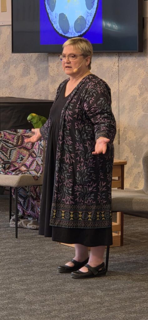 Julia Ryberg använde tiden väl. Efter inledande tystnad berättade hon om sin bok ”Ur tystnaden” och presenterade en övning. Deltagarna parade ihop sig. Den ena fick prata två minuter, medan den andra lyssnade utan att avbryta. Sedan bytte man. Allt avslutades med tystnad.